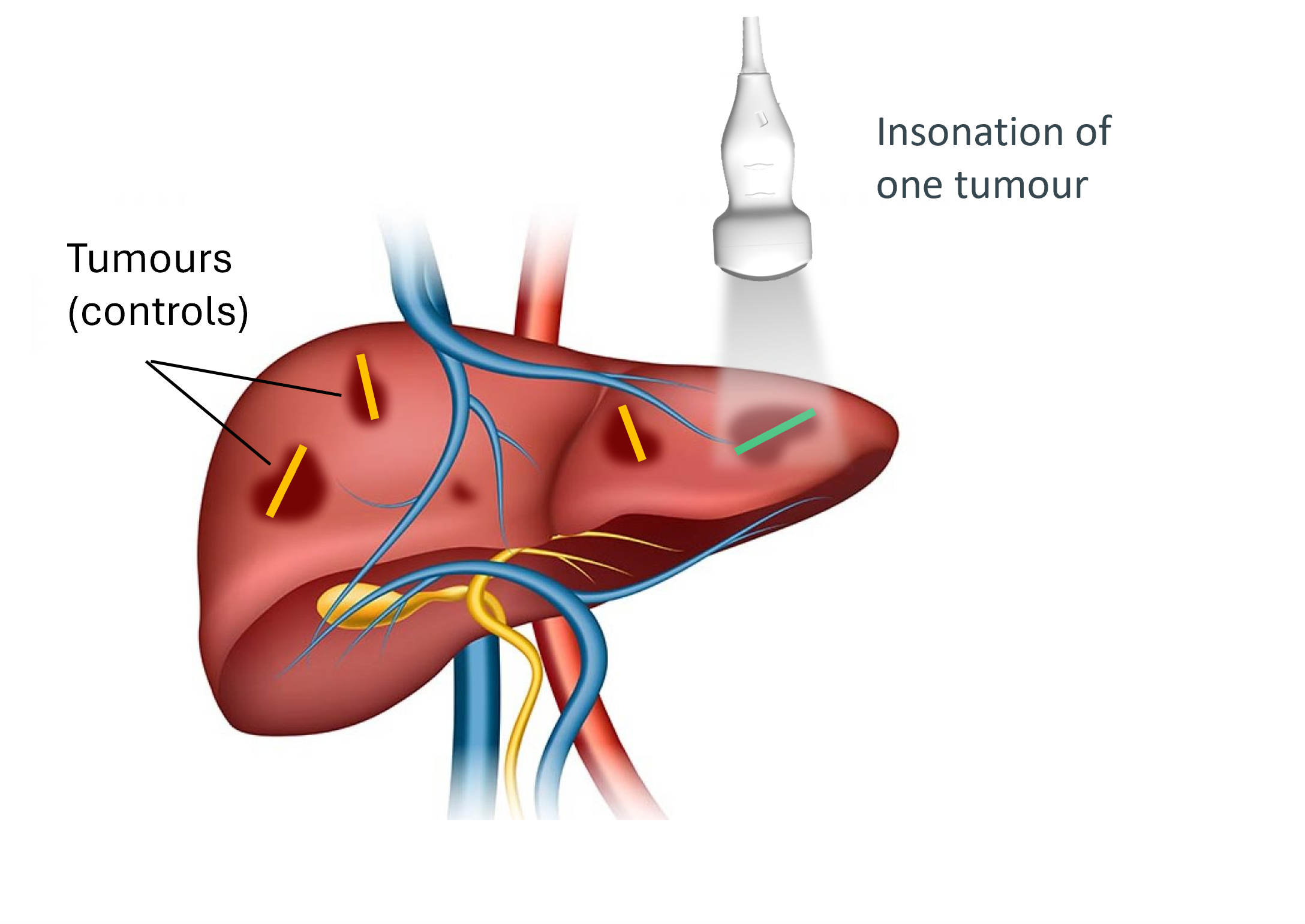 In the study, we used an innovative approach to assess within-patient effect of the combination of ACT with chemotherapy against chemotherapy alone by insonating one cancer lesion in the liver and comparing change in tumour size and volume with tumour lesions that have not been insonated. Assessment was done at week 8 by blinded central review.