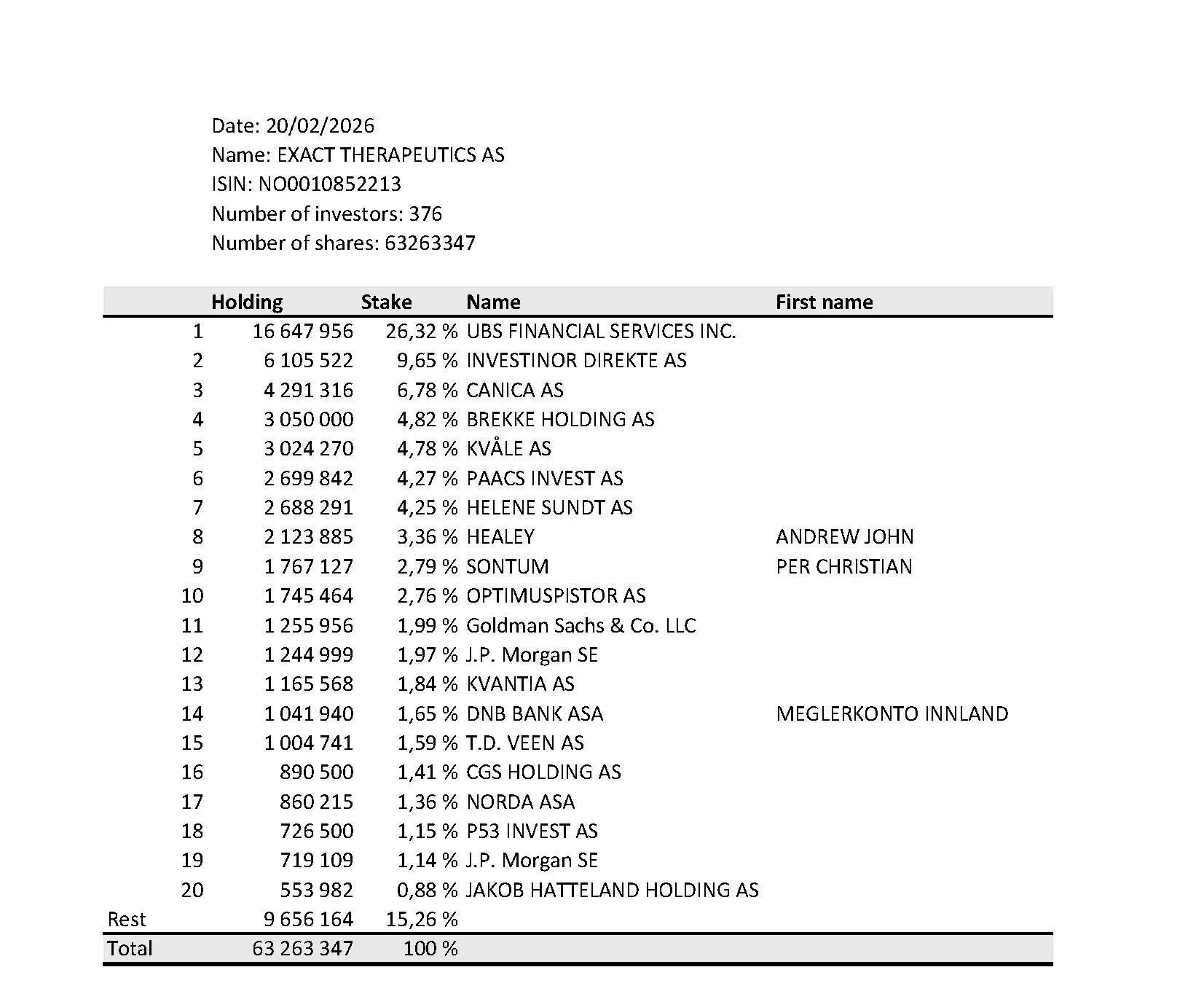 Daily updated share register available for Scandinavian investors at Public Shareholder Register.